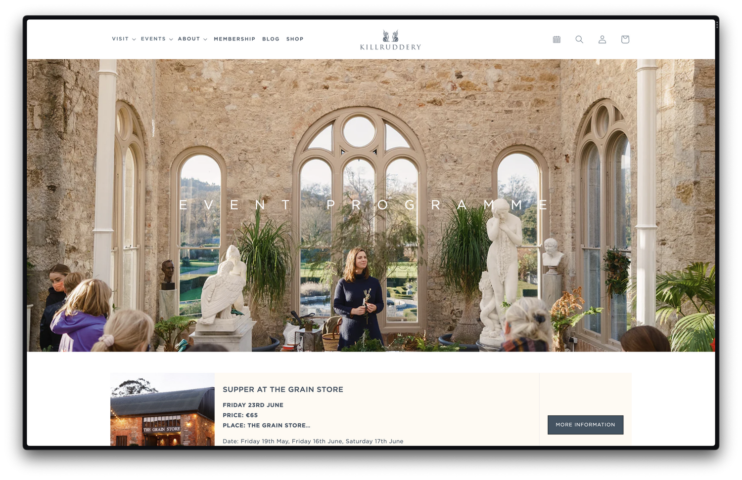 Additionally, we prioritised the seamless transfer of the events and restaurant booking system, ensuring a smooth transition for visitors looking to reserve their spots and explore the estate’s offerings. By successfully re-platforming to Shopify while safeguarding the essence and functionality of their website, Killruddery House can continue to engage visitors with their captivating history, showcase their exceptional event spaces, and offer a seamless booking experience for events and restaurant reservations.